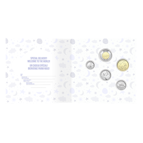 - Exclusive to this gift set. Instead of the classic Loonie, the $1 coin in this set features a cute star-and-moon baby theme and an iconic Canadian animal: the polar bear. This special-themed coin is only available as part of the 2025 Baby Gift Card Set—it is not available on its own.