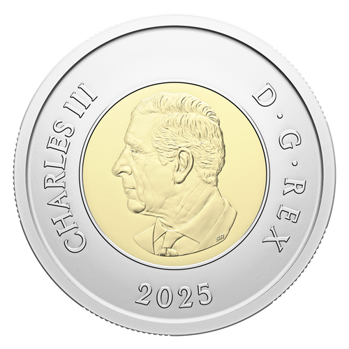 Designed by Canadian artist Tony Bianco, the $1 coin in the 2025 Baby Gift Card Set celebrates baby’s arrival with a sweet depiction of a sleeping polar bear cub cradled by the large crescent moon in a star-filled sky. The obverse features the effigy of His Majesty King Charles III by Canadian artist Steven Rosati.