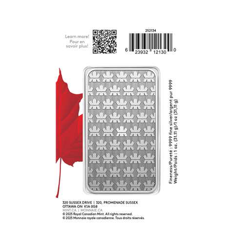 Pure Silver Bar in Proudly Canadian packaging - 1 oz. 99.99% Pure Silver 2025 (Premium Bullion)