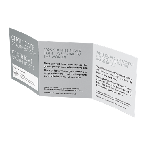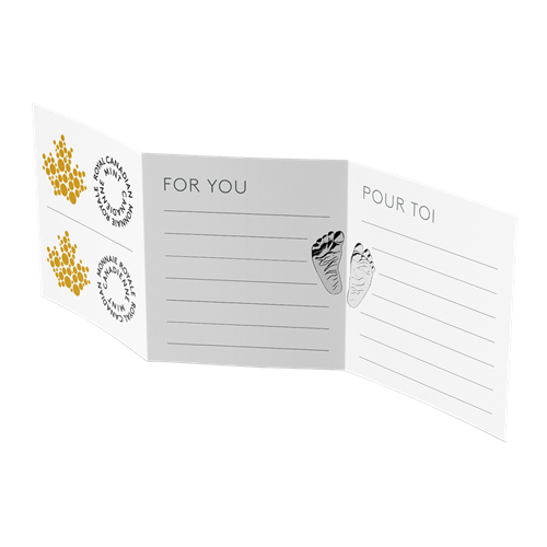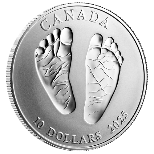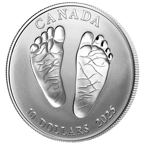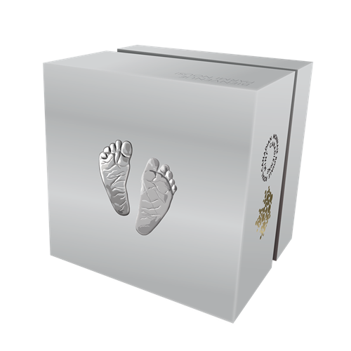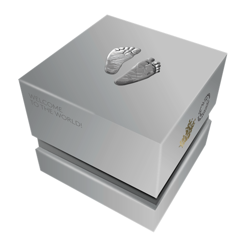 This endearing coin captures the essence of that happy time with a heart-warming design of baby feet struck incuse into the coin, like footprints in the sand. But unlike sand that shifts and fades with time, these imprints are fine silver and will last forever! Celebrate and preserve those first loving memories with this charming and timeless keepsake. It’s presented in a beautiful keepsake box, and includes a specially designed certificate of authenticity with space to add your own personalized message!