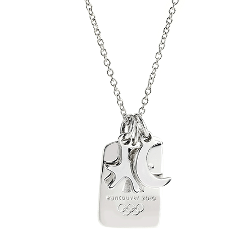 This stunning sterling silver necklace features two beautiful nature-inspired charms and the Vancouver 2010 logo. Chain length: 45cm (18") chain in sterling sillver.