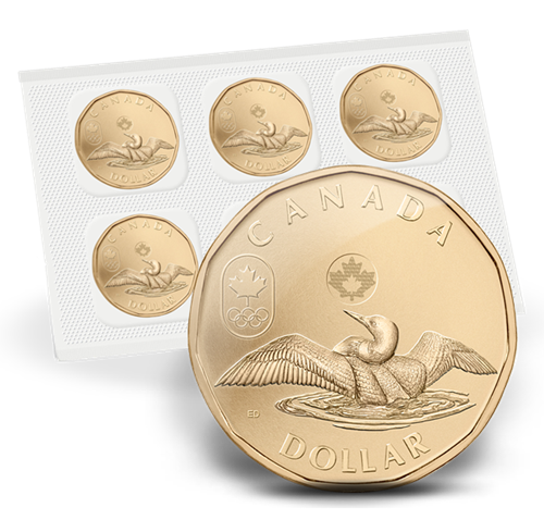 The 2012 Lucky Loonie circulation coin features the iconic loon as it spreads its majestic wings while sitting on rippling Canadian lake waters. The coin also features the Canadian Olympic Team logo, in celebration and support of Canada’s athletes as they compete at the London 2012 Olympic and Paralympic Games.