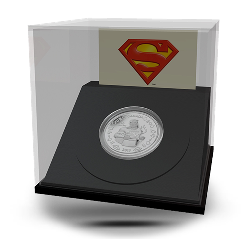 This $10 coin is certified to be 99.99% pure silver witha diameter of 27 millimetres and a metal weight of 7.96 grams. The reverse image, provided by DC Comics/Warner Brothers, features a vintage Superman breaking his bonds. The reverse is engraved with the word “CANADA,” the date “2013” and the face value of “10 DOLLARS,” as well as “SUPERMAN” in the fictitious Kryptonian language from Superman’s home planet. The obverse features the effigy of Her Majesty Queen Elizabeth II by Susanna Blunt.