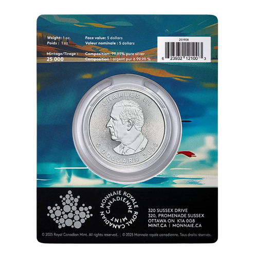 Price is subject to change without notice. Represents minimum guaranteed weight. The Royal Canadian Mint reserves the right to refuse or limit orders, and to change its prices and product offerings without notice if, for any reason, it should be found necessary to do so. The Mint also reserves the right to impose purchase quantity limits on certain items. Once an order is placed, it cannot be cancelled. Premium Bullion Products in special packaging are final sale (they cannot be returned or exchanged and are not eligible for refund for any reason). Exceptionally, in the event of a damaged, defective or incorrect product purchased through the Mint online (whether by mobile app or on mint.ca) or via the call centre, you may contact the Mint’s Customer Service Solutions Centre within 14 calendar days after shipment to request an exchange for the same product originally purchased (subject to product availability), where the Mint will, at its discretion, evaluate exchange requests on a case-by-case basis.