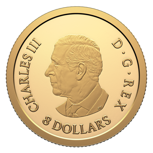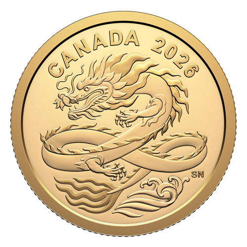 The reverse design by Canadian artist Simon Ng features a stylized depiction of a dragon, the benevolent creature of Chinese mythology. Paired with waves that usher in prosperity and joy, the dragon forms the shape of the lucky number 8. The obverse features the effigy of His Majesty King Charles III by Canadian artist Steven Rosati.