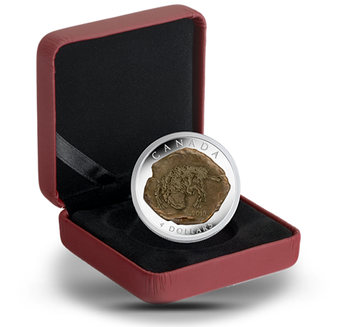 A selective aging effect creates a powerful impression of fossilizedbones in stone. In fact, this technique ensures no two coins are exactlyalike. Each 99.99% pure silver coin is unique and—with a design thatwas developed in close collaboration with palaeontologistsat Alberta’sRoyal Tyrell Museum—is an original and compelling keepsake of one ofhumanity’s great fascinations.