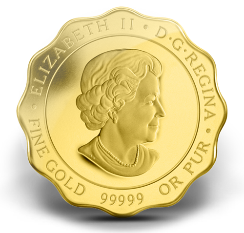• Fine gold (99.999% pure) coin with unique scallop shape.