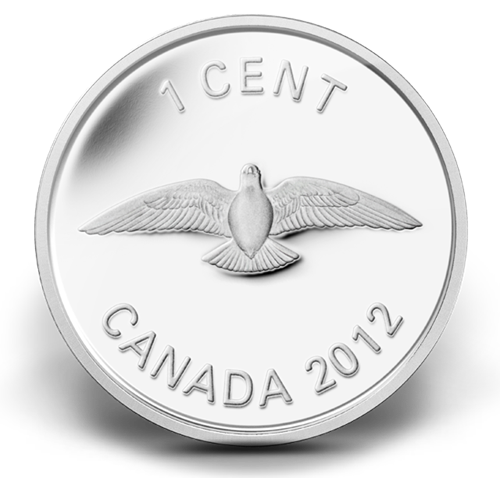 On January 2, 1908, Countess Alice Grey, wife of Canada’s ninth Governor-General, Albert Henry George Grey, struckCanada’s first domestically produced coin: a 1-centpiece. In 1911, the ascension of George V to England’s throne necessitated a change in the sovereign effigy on the obverse of Canadian coinage. In 1920, The Royal Mint introduced a new design for the penny, created by Fred Lewis, featuring two maple leaves flanking the words “ONE CENT” beneath the word “CANADA” on the coin’s reverse side. Seeking to modernize the appearance of Canadian coinage, the Royal Canadian Mint introduced G.E. Kruger-Gray’s iconic maple leaf twig design, which remained the penny’s reverse image every year (except 1967) until 2012. To celebrate Canada’s centennial, famed Canadian artist Alex Colville created a special commemorative set of coin designs for 1967. In an effort to make it easier forthe visually impaired to distinguish between coin denominations, the shape of the maple leaf twig pennywas altered from perfectly round to 12-sided. The round design was reintroduced in 1997 and the penny remained round until its last year of production.