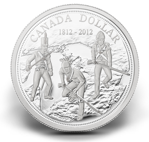 • Intricate detailing on the Proof Silver Dollar depicts a British sergeant, a Voltigeur Canadien, and an Iroquois warrior in historically accurate uniform approaching the invader with unity of purpose to defend the border and colonies they represent.