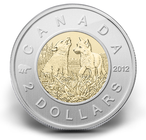 • Designed by artist Emily Damstra, your $2 coin features two wolf cubs, one howling at the sky while the other looks on curiously.