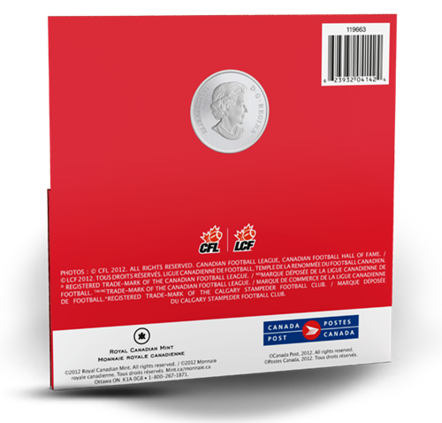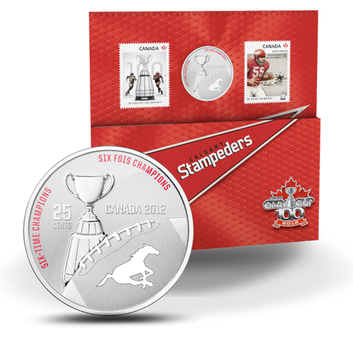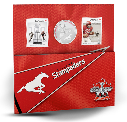 • Double your collectibles! Along with your coin, you receive 2 special-edition CFL stamps: a Grey Cup stamp and a Calgary Stampeders stamp!