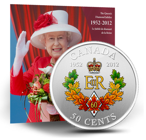 The Queen's Diamond Jubilee Emblem for Canada - Silver Plated Coloured Coin (2012)