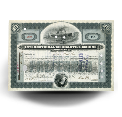 • Your authentic stock certificate was issued by the International Mercantile Marine, the shipping trust that controlled the White Star Line, builders of the R.M.S. Titanic.