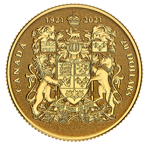 - THE 1921 VERSION! Celebrate the 100th anniversary of the Arms of Canada with this pure gold coin, which features the original design from 1921.