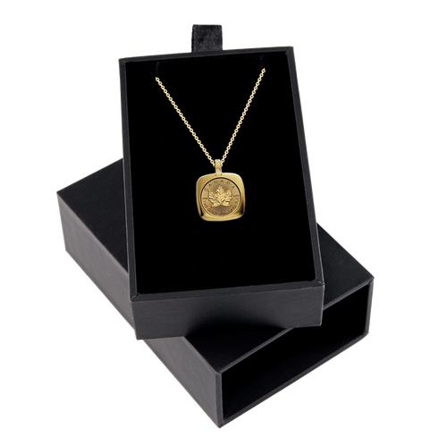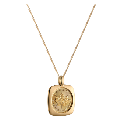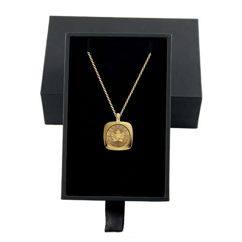 Celebrate the best of Canada’s proud craftsmanship tradition with a 24K Gold Maple Leaf (GML) in an 18K gold pendant (with chain), which transforms a world-renowned trusted investment piece into wearable jewellery.