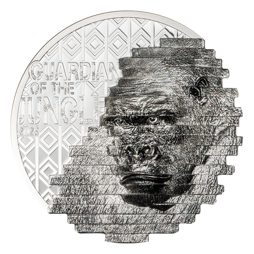 This coin is a tribute to the majestic creatures of the African wilderness, in particular the gorilla, often referred to as the “guardian of the jungle”.