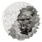 - The bust image of a gorilla is decomposed into horizontal, rod-like segments that are slightly offset from each other, creating an alienating effect. The edge of the commemorative coin is particularly noteworthy as it precisely matches the form of the segments, creating a highly complex special shape.