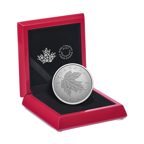 Expertly engraved in rare 99.95% pure platinum, this red maple (Acer rubrum) leaf embodies a refined expression of pride in the intricate beauty of nature. The coin’s reverse proof finish directs all the light onto the leaf’s form, where hundreds of precisely cut micro-mirrors create a pulsating effect. The light subtly shifts in a gentle rhythm, lending the piece a sense of movement and vitality—as if echoing a joyous heartbeat.