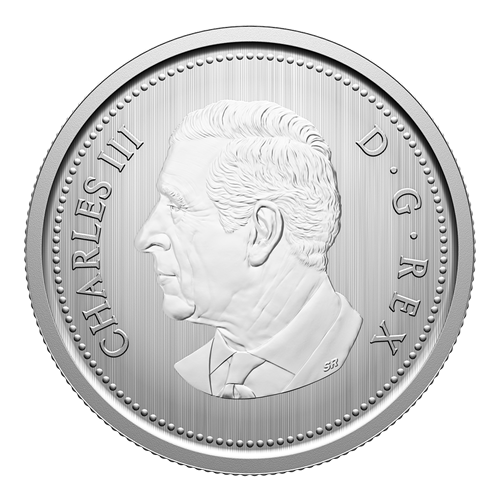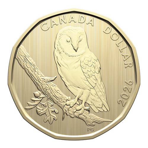 The reverse of the set-exclusive Specimen Dollar is by Canadian artist Pierre Girard, whose design highlights the majestic features of the barn owl (Tyto alba). Considered an endangered species both federally and provincially in Ontario, the nocturnal raptor is shown perched on an oak branch that provides an elevated vantage point. The obverse features the effigy of His Majesty King Charles III by Canadian artist Steven Rosati.