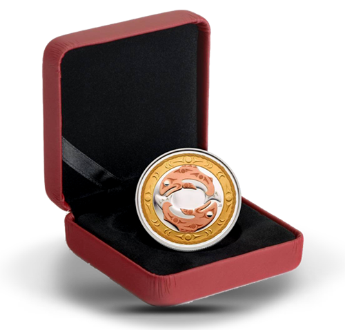 Particularités : Avec son style unique, l’art amérindien de la Colombie-Britannique est de plus en plus apprécié de nos jours et se manifeste jusque dans la numismatique, avec cette pièce à trois tons inspirée d’une sculpture originale sur bois. Les dorures roses et jaunes ajoutent une touche de distinction inattendue.