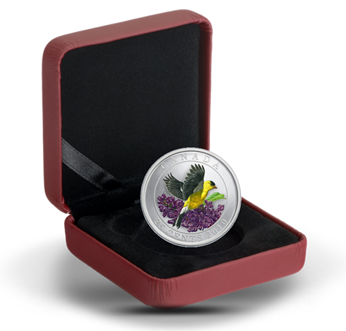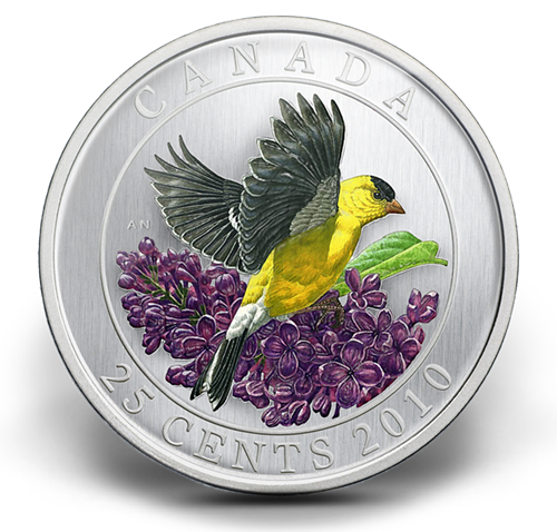 Après une pause d’un an, cette série captivantenous revient avec une magnifique pièce où figuredans tout l’éclat de ses couleurs l’immanquablechardonneret jaune (Carduelis tristis).