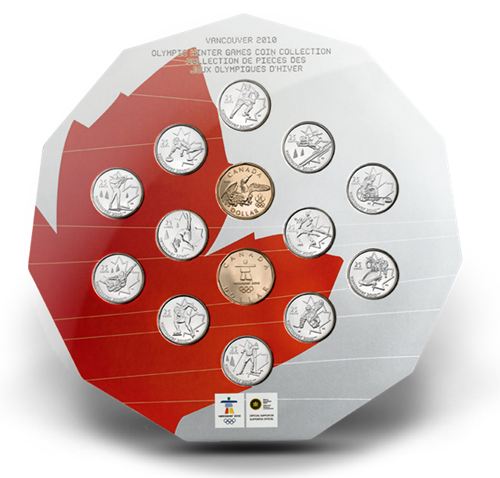Cet ensemble est l’unique moyen de se procurer toutes les pièces représentant les sports ainsi que les dollars porte-bonheur de Vancouver 2010 avant leur mise en circulation.