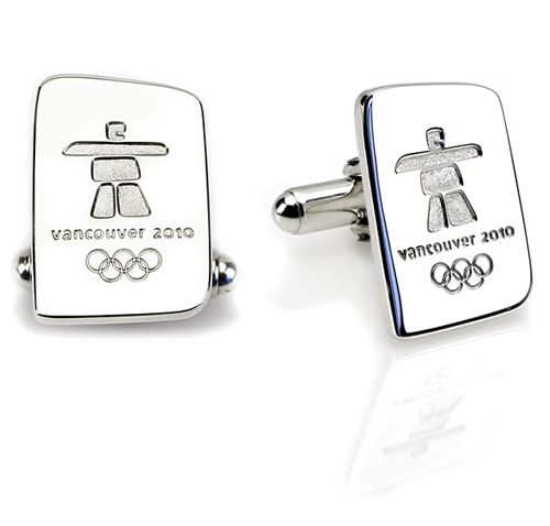 Ces petits boutons de manchettes sont ornés du logo de “Vancouver 2010” et sont en plaqué argent émaillé.