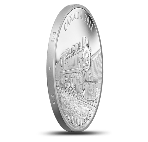 Le riche patrimoine ferroviaire du Canada prend vie à nouveau surcette magnifique pièce en argent pur, au motif gravé à la manièred’antan, avec toute la profondeur et la perspective que procure le finiépreuve numismatique. Le nom inscrit sur la tranche est un autre traitcaractéristique auquel ne saura résister l’amateur de trains, quel quesoit son âge.