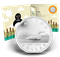 Pièce présentée dans une carte de collection, protégée par une enveloppe plastifiée.