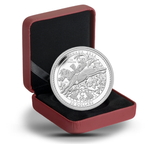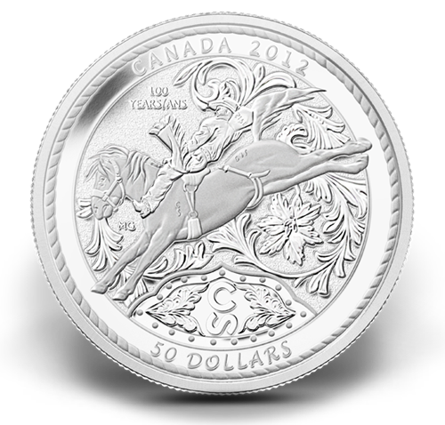 Le 6 juillet 2012, les passionnés de rodéo viendront du monde entier en Alberta pour assister au Stampede de Calgary, la plus grande célébration à dos de cheval et leplus grand spectacle extérieur au monde. Que vous assistiez au 100e anniversairedu Stampede de Calgary ou non, procurez-vous cette superbe représentation en argent fin d’un événement typiquement canadien.