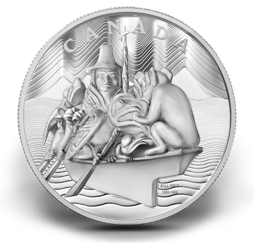 La pièce illustre le chef-d’œuvre L’esprit de Haida Gwaii de Bill Reid, l’un des artistes canadiens les plus chevronnés et renommés.