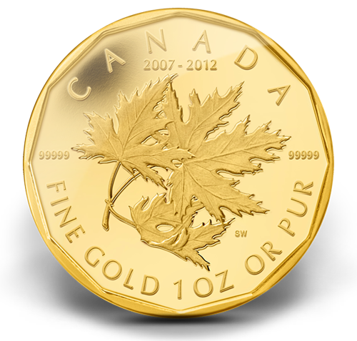 Ensemble de pièces Feuille d'érable en or 2012 - Cinquième anniversaire de la pièce de un million de