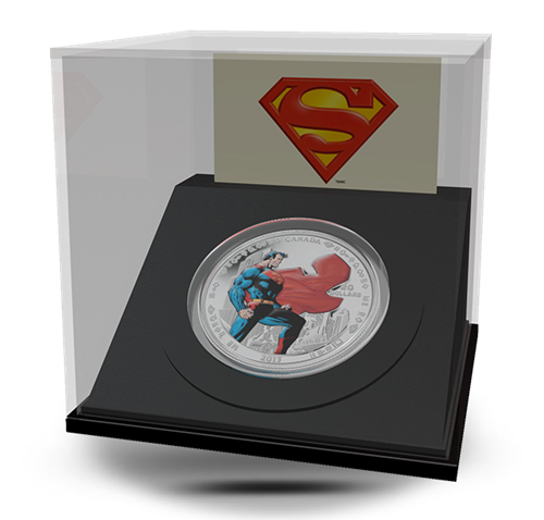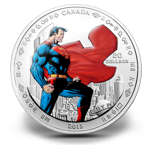 Cette pièce de 20 dollars en argent pur à 99,99 % fait 38 millimètres de diamètre et a un poids métallique de 31,39 grammes. Le motif au revers, fourni par DC Comics/Warner Brothers, met en vedette Superman veillant sur Metropolis. Le revers porte la mention « CANADA », le millésime « 2013 » et la valeur nominale