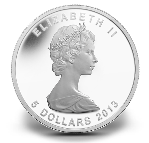 • L’avers de la pièce est à l'effigie de Sa Majesté la reine Elizabeth II, œuvre d'Arnold Machin, le même portrait qui figurait surla première Feuille d’érable en argent lancée en 1988.