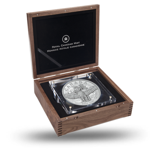 La pièce est présentée dans un boîtier en acrylique et accompagnée d’un certificat numéroté sous forme de livret. Le tout est contenu dans un élégant coffret en noyer orné du logo de la Monnaie royale canadienne. Pour en protéger l’intégrité, le produit est expédié dans un coffret de marque Pelican 1550 à l’épreuve de l’eau, des coups et de la poussière.