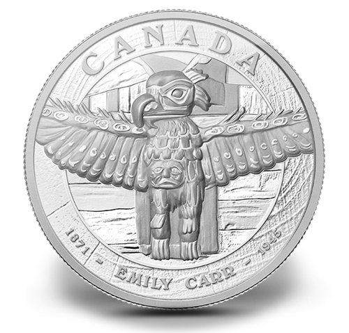 • D’un diamètrede 7 pouces, cette superbe pièce en argent fin présente une portion du chef-d'œuvre à thème totémique qu’Emily Carr a réalisé en 1912. Aucune TPS ni TVH.