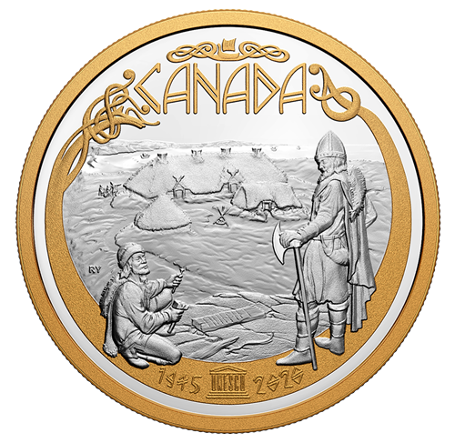 Œuvre de Rebecca Yanovskaya, le revers nous fait voyager dans le temps grâce à une représentation artistique de l'établissement viking de L'Anse aux Meadows, un site du patrimoine mondial de l'UNESCO. L'explorateur scandinave Leif Eriksson se tient à l'avant-plan, d'où il observe son équipage et contemple fièrement le campement qu'il a fondé autour de l'an 1000. Un placage d'or sélectif rehausse les fioritures, inspirées de l'art et des gravures sur bois nordiques. Le mot « CANADA » est inscrit en lettres runiques, tout comme les dates « 1945 » et « 2020 » qui figurent de chaque côté du logo de l'UNESCO et soulignent le 75e anniversaire de l'organisation. L'avers est à l'effigie de Sa Majesté la reine Elizabeth II, selon Susanna Blunt.