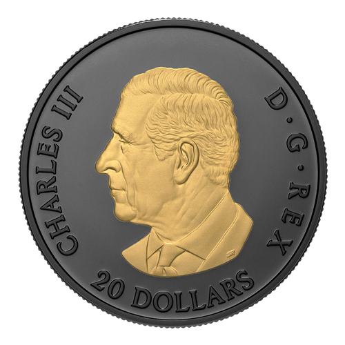 Le motif au revers, œuvre de l’artiste canadienne Donna Kriekle, présente une feuille d’érable à sucre (Acer saccharum) rehaussée d’un placage d’or, contre un champ et un cordon plaqués de rhodium noir. Le placage de rhodium noir rehausse également le champ et le cordon à l’avers, qui est à l’effigie de Sa Majesté le roi Charles III, selon l’artiste canadien Steven Rosati, laquelle est aussi rehaussée d’un placage d’or.