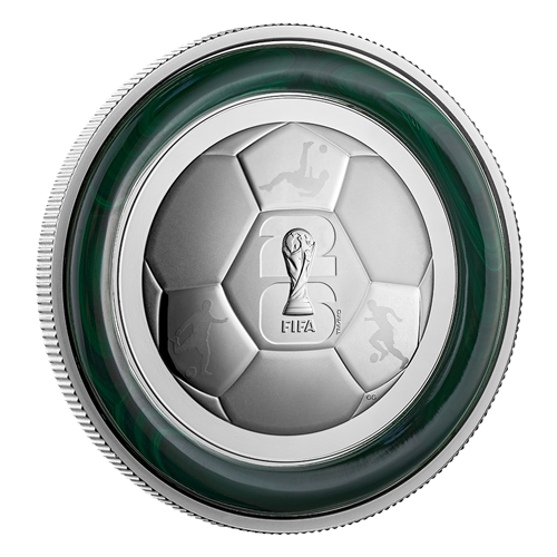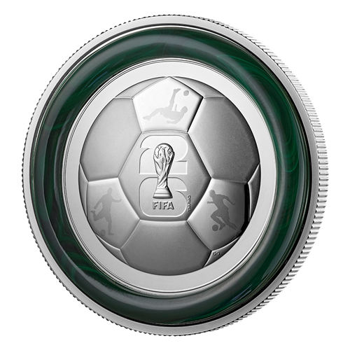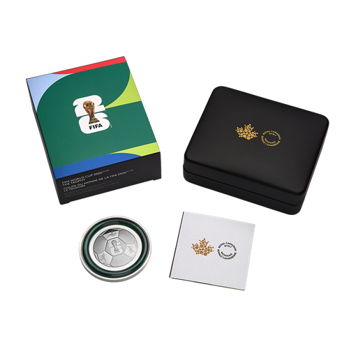 - Une impressionnante pièce de 5 oz. Il s’agit de la plus grande des pièces en argent pur à 99,99 % de notre collection de la Coupe du Monde de la FIFA 2026MC/TM. Chaque pièce vous plonge au cœur de l’action avec des motifs qui incarnent l’enthousiasme et l’esprit universel du « beau jeu » en 2026.