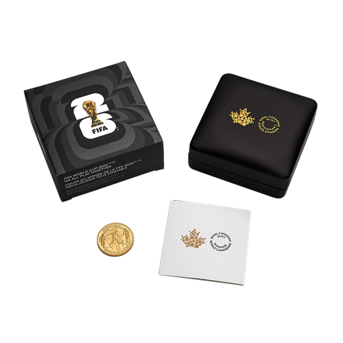 La pièce est encapsulée et présentée dans un boîtier à double coque noir orné du logo de la Monnaie royale canadienne. Celui-ci est accompagné d’une boîte protectrice de luxe ornée du logo de la FIFA et d’un autocollant officiel de l’organisation garantissant l’authenticité de la pièce comme produit officiel sous licence.